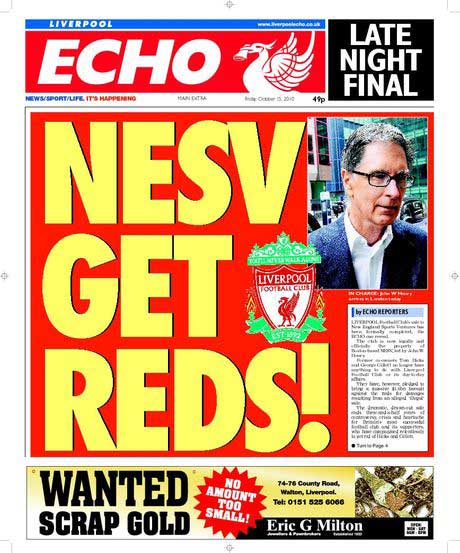 … as, in the 20 minutes between designing that and the edition being sent to press, the LFC sale had moved on again and taken the lead slot on the front. It was relentless, frustrating and exciting. I was happy we still had an on-day edition of the Echo, and sad that the 3pm late City Final edition was no more. And I was delighted that online we could react/predict fast enough to keep ahead of things.