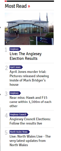 Local elections covered live, and covered well, are compelling content and give good dwell time on – more than 3 minutes each – per page in this case (Anglesey, by the way, bucked the turnout trend – a breakdown of the island’s voting showed: Seiriol 56.1 Talybolion 48.7 Twrcelyn 53 Ynys Cybi 45.7).